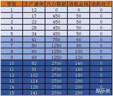2,如何提高面包的获取能力科技总共有15级,不同的等级生产速率和兵力限制,以及所需金币消耗都有所不同