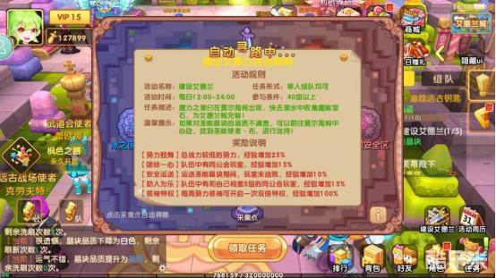 建设艾德兰还有一些活动规则要告诉大家。需要提醒大家的是,一定要组上自己家族的小伙伴去完成任务,经验会增加很多呦。