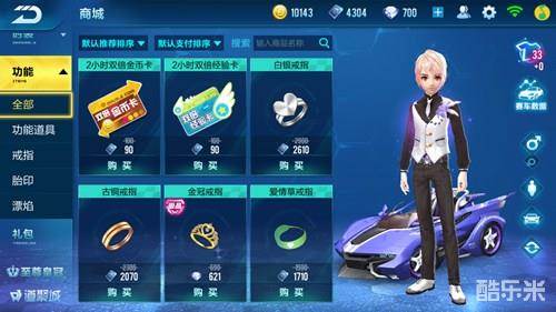 要结婚,肯定就要求婚,所以首先我们要购买结婚戒指,在商城中的“功能”选项里,可以看到有戒指出售,目前游戏只为我们提供了四个戒指,它们的价格不同,当然外观酷炫程度也是不同的,大家可以根据自己的能力来购买。