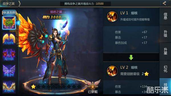 提升战争之翼的星级,同时就提升了战争之翼的技能等级,收益庞大。