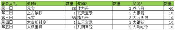 单笔充值3280元宝:元宝*3280,玄机石*200,养心丹*600(每日重置)