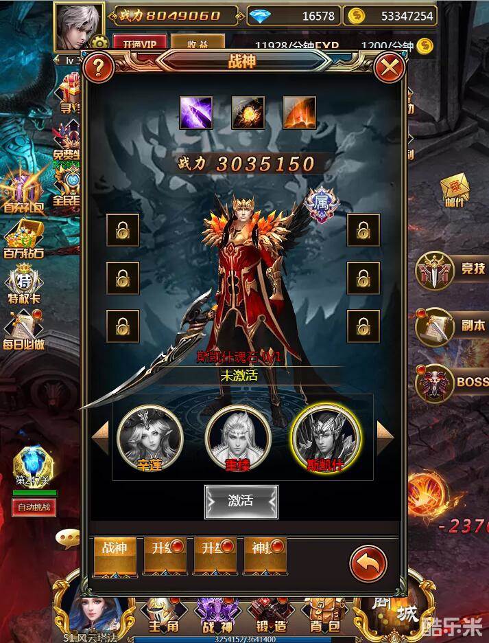 当玩家在各种副本、BOSS战以及其他途径中获得战神魂石,就可以解锁相应战神,并且命令其出战,每个战神都可以为玩家提供强大的战力,所以解锁越多战神,越能让你走向巅峰。