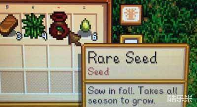 得到稀有种子后,在秋天种下(如果有温室,随便什么季节)。这个种子长成的植物任何季节都可以生长。