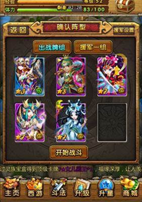 50以下还是黑山老妖,尽量使用猴子、紫霞这些对妖族有克制技能的卡片,伤害会很高,有一点还是得说明大家要充分利用白晶晶这张卡,非常给力的,小编本身输出能打370W的时候,把猪八戒换成白晶晶,就能打出490W的伤害,非常给力!!卡位一定要把白晶晶放到第一位,以便能第一时间施放出她的技能。输出高的卡片放到23位置,如