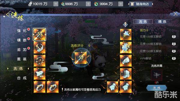2)槽位必须已有洗炼属性才可被精炼,锁住的槽位不会被精炼