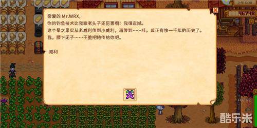 当你钓完所有种类的鱼后,隔天可以在邮筒中收到威利一封意味深长的邮件,星之果实附在邮件中一起给你了。
