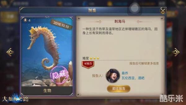 遥望热带海洋上空随处可见的红嘴水鸟,寻路生长在海岸盐沼边的红树林,取道尼罗河中游的卢克索地区,见证那里记载了辉煌与文明的古埃及石庙,或是沿着耀眼的金色轨迹,探寻砂砾堆砌的贾沙梅尔城堡。你甚至可以在温带近岸珊瑚区中,寻找栖息在那里,随机可发现的刺海马。10月,《大航海之路》为船长新增多处隐藏发现物,又一段探险之旅即将启程!