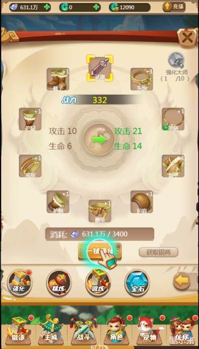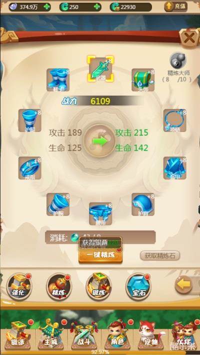 《精炼》所需物品:精炼石。精准的对我们的装备进行提升,当我们完成了精炼大师,还有防御的加成哦!
