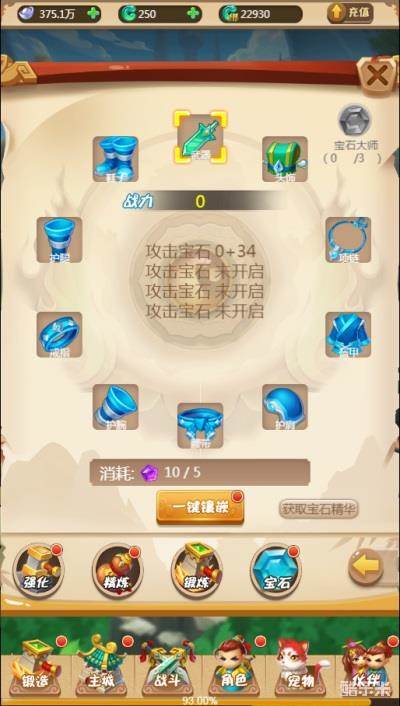 《宝石》所需物品:宝石精华。利用获取的宝石精华终极提升装备的属性。