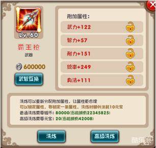 细心的小伙伴会发现,在游戏中刚得到的装备,其五维属性分配相当平均。So,如果要将武将的特性发挥到极致,就必须将装备属性进行洗练。