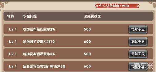 “ 贡献”可以学习非常有用的技能,让你的战斗事半功倍哦~