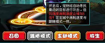 勇士的信仰的信仰宠物主动模式来起后,宠物将自动寻找最近的目标进行攻击,但饥饿度消耗速度增加5被!在主城消耗速度与跟随模式一样!