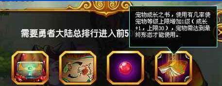 6.增加宠物成长功能,在排行榜的“勇者宝箱”中可兑换"物成长之书"