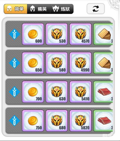 当前版本是按照地域划分的,4个地域,每个地域都有10个关卡,每个关卡有3种不同的难度,分别为简单、精英、炼狱,开启高难度关卡需完成该关卡的前置难度,难度越高可以获得越好的奖励。