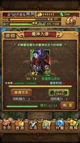 仙-妖-灵-仙,这是克制表,所以打魔神妖看你的卡组什么最多? 还有你卡的多少,比如我有5张仙卡,那么我选择一定是打黑山老妖,(血少的不要打,只打紫或者等级高的蓝。记住,要血多,残血的别碰)如果只有5张主输出卡,那么我建议分两组,前面3张主卡,后面2张主卡。(因为基本输出只有5个回合,所以,我选择的就是耗血,多打一点伤害,其它空位垃圾卡占位)
