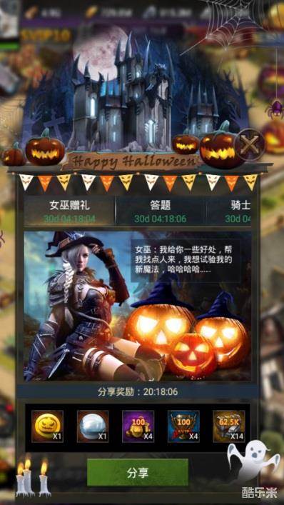 在活动开启后,可通过分享女巫的礼物获取奖励,奖励包含南瓜糖果币哦~