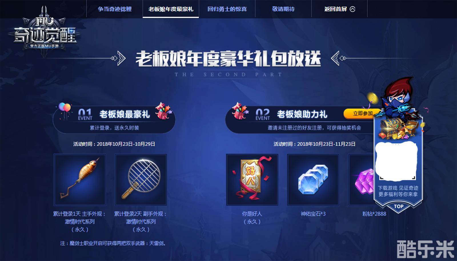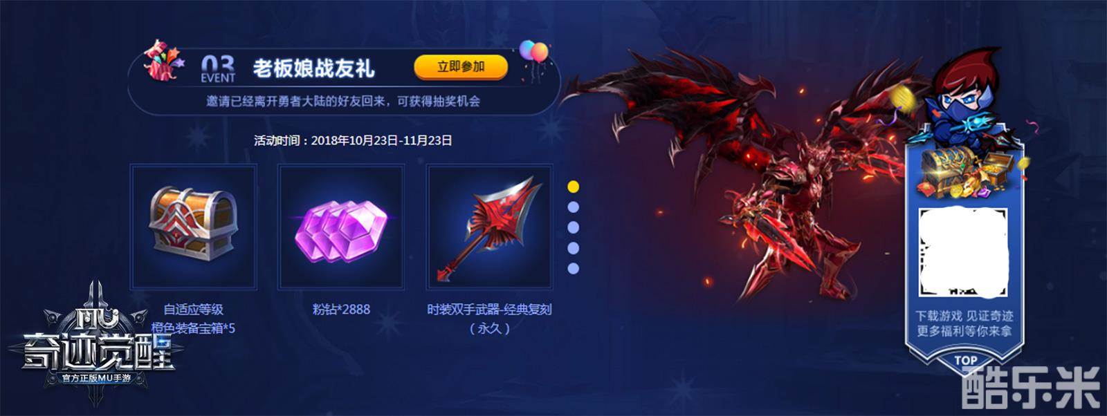 《奇迹MU:觉醒》喜迎魔剑公测 全民福利盛典揭幕