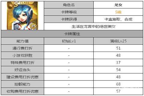 天天富翁龙女S级卡牌属性技能攻略