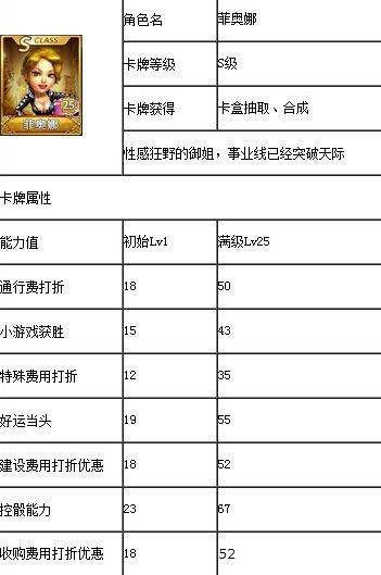 天天富翁菲奥娜是一位长的很性感的女性哦,作为五位新出来的角色之一受到很多人的关注,让我们来了解一下是不是角色很厉害呢,合成之后是不是有心中所期盼的惊喜呢。下面是她的属性,一起来看一看,熟悉角色是很重要的。