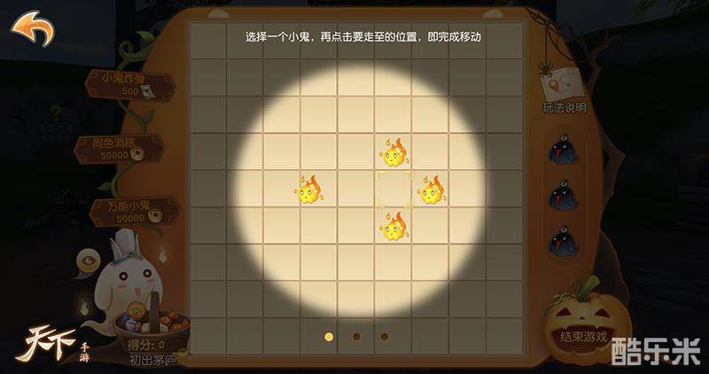 七颗龙珠就能召唤神龙,那《天下》手游“万圣连珠”捉住五个小鬼呢?当然是降妖除魔做好汉!少侠只要按照游戏规则将9x9格子里的5个同色小鬼连成一条直线,就可瞬间消灭获得大量积分!活动结束时排名靠前的玩家还可将专属荣誉称谓、万圣节聊天框、南瓜变身道具等好礼都拿回家哦。