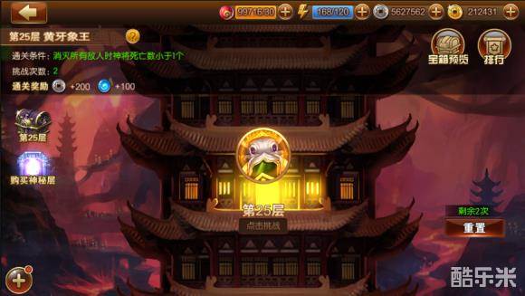 试炼塔就是靠战斗能力拿奖励的活动,爬的越高奖励越丰富,每天只能重置2次。每5层得到一次奖励。当然拿奖励也要有点难度,每5关的最后一关都有个BOSS。