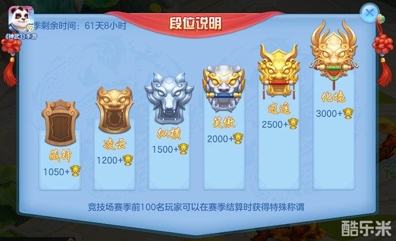 随着新竞技场的上线,竞技场迎来大刀阔斧的优化调整:新增竞技场段位排名,藏锋、凌云、纵横、笑傲、逍遥、化境六大段位次第解锁,彰显不同玩家的竞技水平;新增防守助战伙伴“持国天王”,帮助防守方进行防守;新增赛季模式,2个月为一个赛季,赛季结束时杯数最高的前100名玩家可获得大量英雄积分和特殊称谓;积分商城新增英雄积分、英雄名帖和竞技场头像框,每日榜前100名或者赛季前100名的玩家可获得英雄积分奖励,英雄积分可用于兑换英雄名帖、竞技场头像框。