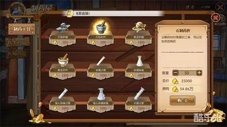 学徒阶段做的药品都是限时的属性药,过任务可用,但是目前版本任务难度不大,就算打不过再去升升级回来再打就是了,所以这些药品不推荐做,前两天的活力全部用来采集白色草药花进行分解,分解需要石制药碾和石制药杵,可以在材料商店购买,制药界面右上角购买材料按钮可以直接购买。