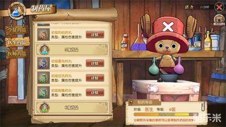 目前《航海王:燃烧的意志》角色什么伤害最高?当然属性伤害!不论你是什么技能,只要带上属性伤害状态,必定能够打出精彩的伤害,那么如果更够增加自身的基础属性伤害,无疑是对角色输出的提升,同样的如果能够增加角色自身的属性伤害抵抗能力,也是增加角色生存的一个好方法,游戏中的制药就是帮助大家不氪金也能拥有的好方法,下面小编就来给大家介绍一下关于制药的攻略!