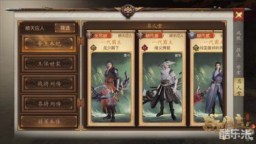 进入战国“名人堂”,将军即可查看各朝代帝王将相,“帝王本纪”“王侯世家”“战将列传”“名将列传”记录战国荣耀,每一位历史名人都赫然在列,“将军本传”则记录着将军的个人战绩,点击即可查看个人成就、战力、功勋等个人数据,一键生成朝代总结长图,分享让更多人了解您的战国成长点滴!