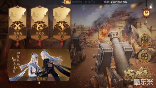 为庆祝年度资料片“无尽纷争”上线,10月19日-10月31日限时开放新资料片活动,将军可化身战车,前往任意敌国掠夺资源,为本国建设舔砖加瓦;还可与其他将军交换令旗,累计获得三种颜色的令旗,即可获得珍稀道具奖励;或前往王城与其他将军划拳行酒令,获得纷争秘钥,开启乱世宝箱及纷争宝箱!