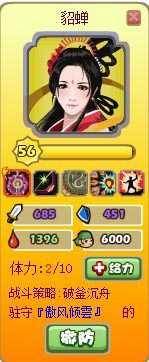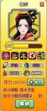 三国时期超级美女之一——貂蝉,在胡莱三国中可是一名非常勇猛的女将哦,也是玩家们非常喜欢的一名女将,胡莱三国版本更新后,貂蝉的地位也受到了威胁,下面小编为大家介绍胡莱三国貂蝉技能新版本搭配。