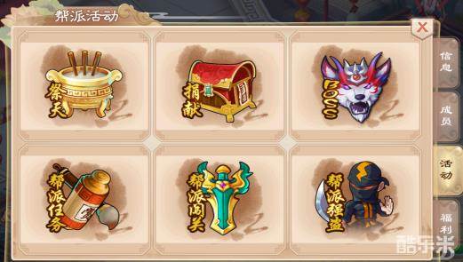 捐赠活动:每天消耗少量的帮派捐献令、银两、元宝,获得帮贡
