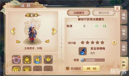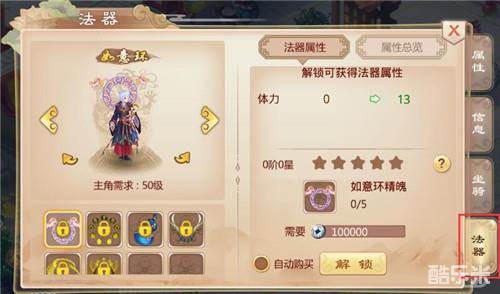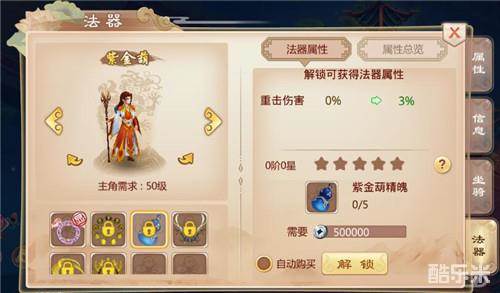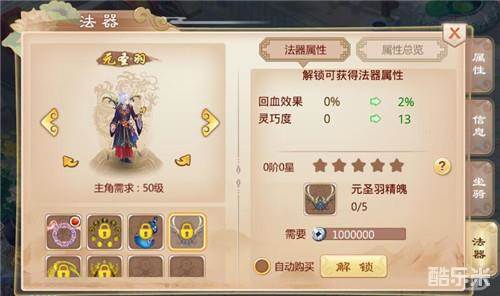 在封神的路途中,单凭一己之力难免会有阻碍,今天要给大家介绍的是能帮助大家顺利登上封神台的神器——法器。在人物达到50级后,系统自动开启法器功能,可在人物信息界面进入查看。