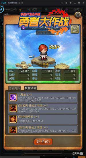 虽然八神庵的舞台从格斗场变换到了《勇者大作战》,但他仍是万众瞩目的存在。在《勇者大作战》目前的版本中,八神庵可谓是品质最高、综合属性最优的勇者之一。作为SSS+的狂战士,八神庵的战斗能力出众,远超同品质普通勇者,其初始属性为战力:22587;血量:1982;攻击:1169。