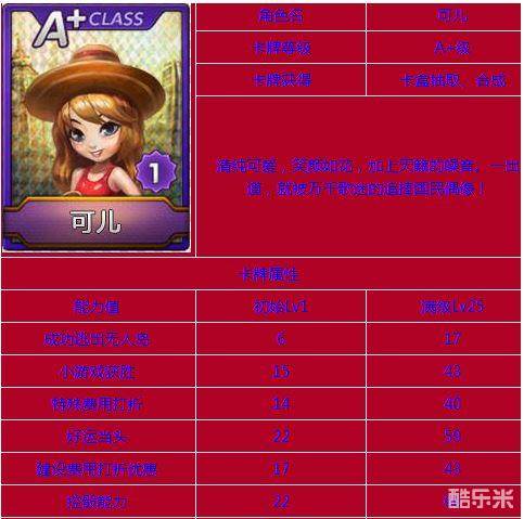 以上是A+亨利的属性介绍,接下来一起看看这这位角色A+可儿的属性介绍。