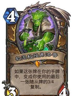 4.软泥教授弗洛普。教授相对于赛雷西亚相比可谓是热门的多了,虽然没有赛雷西亚的潜行效果,但教授的复制是复制己方打出的上一张随从,主动权一般都掌握在己方玩家手中,由于这张卡是德鲁伊的专属橙卡,像蓝龙德或者七七德都非常喜欢带这张卡。