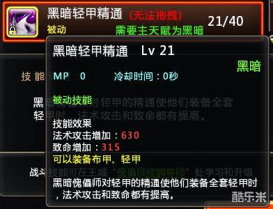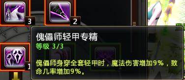 技能面板的跟天赋面板的精通,区别在于天赋点点的精通可以强化这个精通。3点点满是穿着轻甲时增加到百分之9,这个百分之9根据您技能栏学习的被动级数越过收益越大~