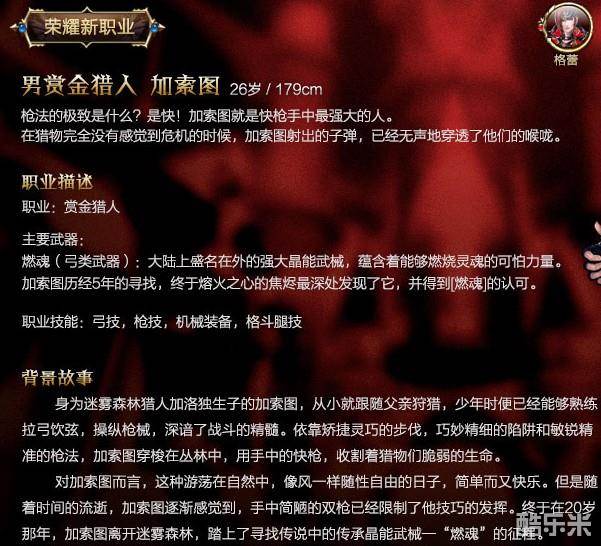 黎明之光新职业男赏金的主要武器为:燃魂,职业技能能:弓技、枪技、机械装备、技术腿技。