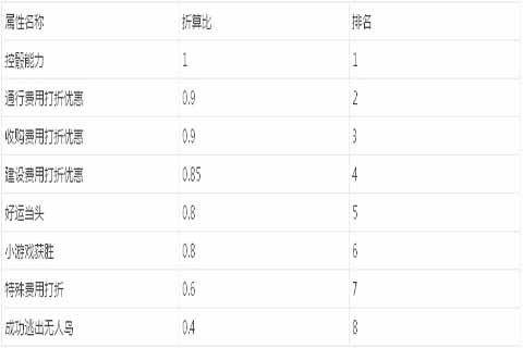 我们先把所有卡牌的属性先列举出来。成功逃出无人岛、小游戏获胜、特殊费用打折、好运当头、建设费用打折优惠、控骰能力、收购费用打折优惠、通行费用打折优惠。以后我们就可以用上面的折算比来计算每张卡牌的具体属性得分了,得分越高就说明这张卡牌的属性越好。