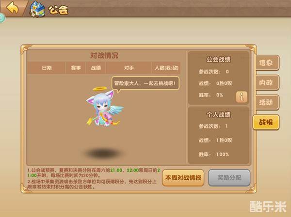 第四个页面是战报,每周的公会战的结果,个人战绩以及对手都会写在这个页面。