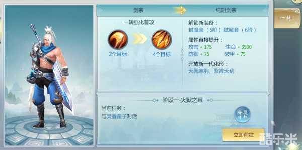 剑宗一转后将成为纯阳剑宗,普攻目标增多,由2个增至4个;解锁5、6阶装备;开放部分翅膀、法宝化形;还能为上仙们增加大量战力。