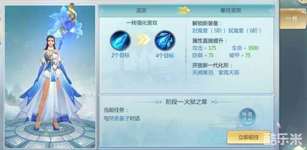 灵宗一转后将成为寒月灵宗,普攻目标增多,由2个增至4个;解锁5、6阶装备;开放部分翅膀、法宝化形;还能为上仙们增加大量战力。