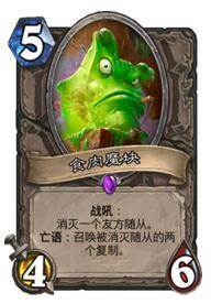 魔块再这套牌中的价值只有2个,一个是吃大蜘蛛,另一个是吃软泥教授变成的大蜘蛛!因为我们没有带牌平衡,所以触发蜘蛛亡语全靠魔块,魔块费用虽高,但是不会给对手牌,并且亡语还会叫2个大蜘蛛,不过这也导致我们大蜘蛛一波有一定的难度,不仅要死足够的嘲讽保证亡语质量,还得有魔块保证亡语的稳定性和及时性;但我们依然只带一张魔块,因为我们亡语只有大蜘蛛一个,需要用魔块的地方不多,第一个魔块出去吃掉大蜘蛛,如果对手经历了我们前面的传播瘟疫、小精灵丛林之魂之后,还能完美解决大蜘蛛的亡语,那我们也是输的心服口服。