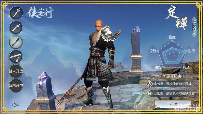 定禅为近战坦克职业,是团队的主要控制人员。定禅的成长方向分为输出流“怒火心”和坦克流“铜人阵”,输出流兼顾着一定的生存能力与输出能力,而坦克流则拥有更强大的抵抗伤害的能力与更强大的控制能力。