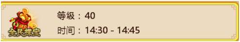 系统将在每天14:30-14:45开启全民探宝活动,在这期间,等级达到40级的玩家点击主界面“全民探宝”图标,即可进入活动地图。寻宝之旅,由此开始!
