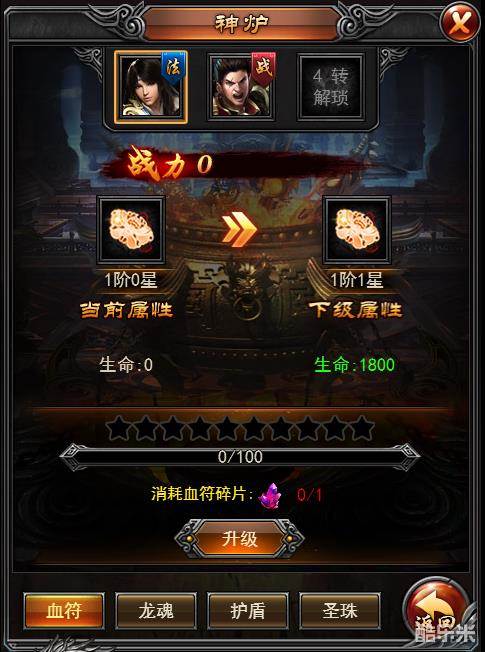 升级血符、护盾、圣珠、龙魂分别需要消耗血符碎片、护盾碎片、圣珠碎片、龙魂碎片。