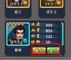选择需要强化的武将,把鼠标放到武将的头像上,然后可以看到武将的属性和强化进阶按钮。