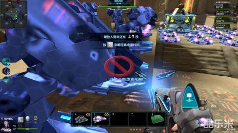 到第四关,就别在下面了,我们利用传送门跑到基地前的平台那,对称性的放好5个天启,在基地门口放好空气墙然后可以喷毒到斜坡那,当然也可以不喷。有钱了以后,就把中间的天启拆了,换成两个,卡好定位空气墙。 空气墙的位置则是在基地门口那,左右两边的台子也放好天启,放满天启后再放风盾。