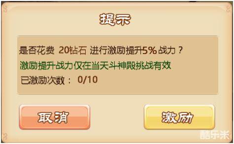 注:玩家可以通过激励战力,提高当天的战斗力,挑战更轻松。