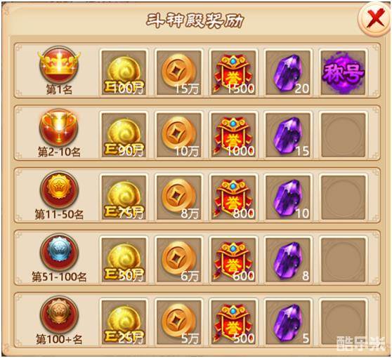 参与奖励:斗神殿每一场比赛,胜利会获得丰厚的奖励,失败也有一部分的经验和荣誉。
